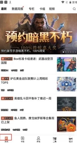 进入首页的资讯板块,这里会为用户呈现多样的搞笑视频,同时也提供简洁精炼的炉石相关资讯。