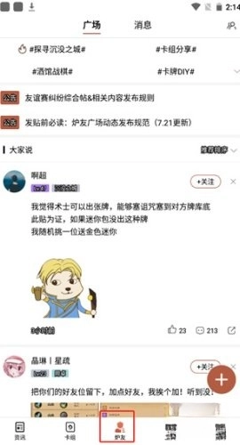 玩家能够点击“炉友”功能,在炉友广场发布自己的动态。