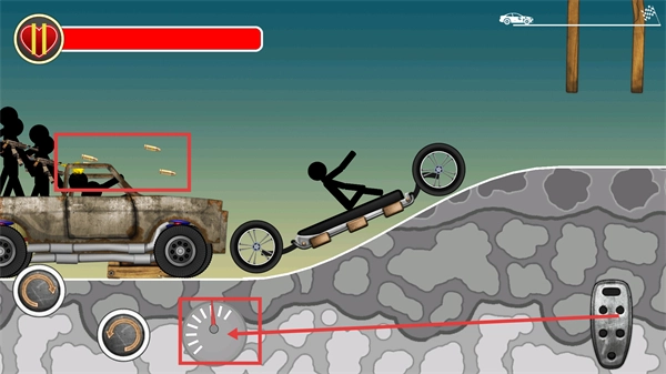 当遭遇敌人攻击时,需操控油门与转向按键,同时留意速度表,通过躲避攻击来保持持续行进。