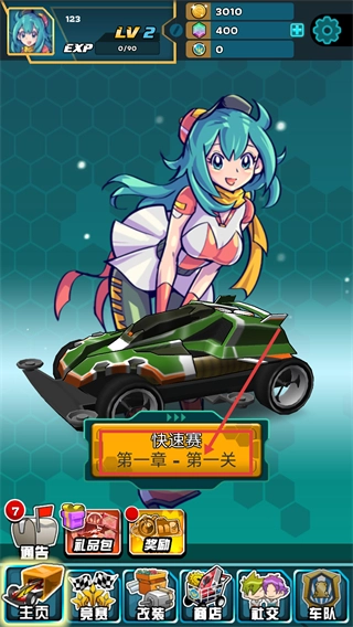 进入游戏后,点击【快速赛-第一章-第一关】开启四驱车竞赛,随着关卡逐步解锁,竞赛体验也会不断提升。