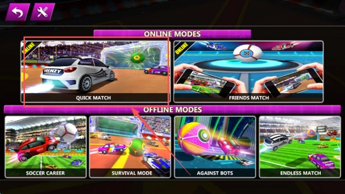 开启竞技准备:进入游戏后挑选赛车并选定竞技模式,明确“通过撞击足球使其进入球门”的目标,熟悉赛车的操控方式以及比赛的具体规则。