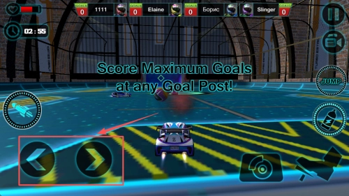 操控赛车移动:通过操作让赛车灵活调整位置,精准定位足球所在之处,适时调节行驶的角度与速度,为下一步撞击足球做好前期准备。