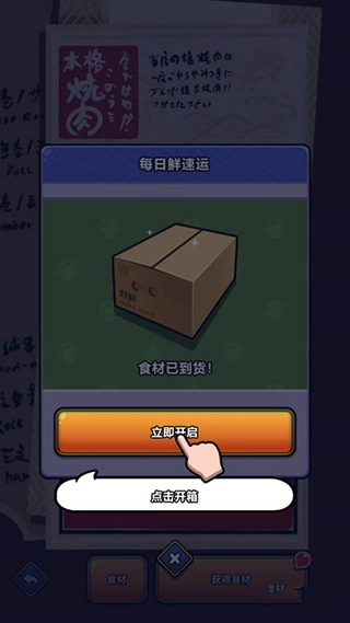 当“每日鲜速运”的界面框弹出后,点击“立即开启”按钮就能获取食材了。