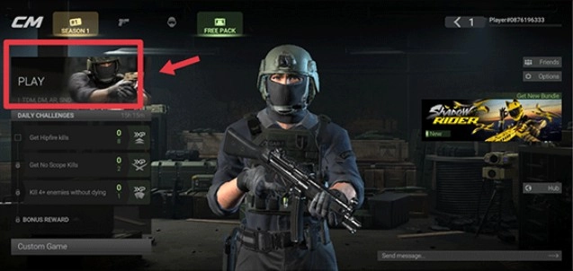1、进入游戏后,点击左侧的PLAY开始匹配。