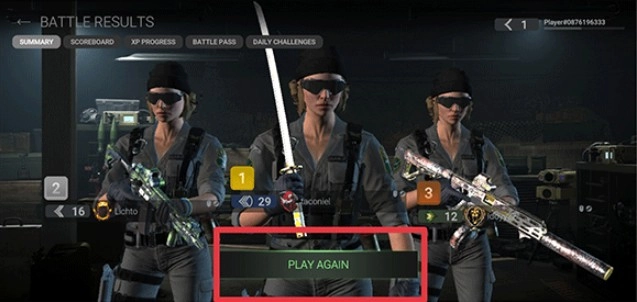 5、每场战斗结束后都可以查看自己的战绩和奖励,也可以选择和刚才的队友再开一把。
