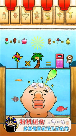 1、通过各种简单的操作,帮助光头大叔,种植浓密的头发。