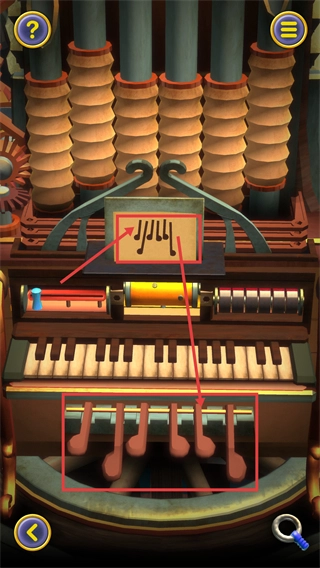 调整左右两侧的音符按钮,让对应的音符块与指定位置相匹配,以此触发中间区域机关状态的改变。