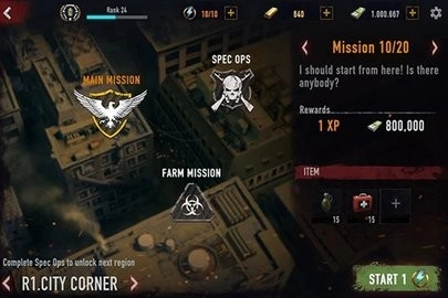 许多种类各异的武器与装备正等待你去尝试体验,通过完成各项任务来获取奖金,并用这些奖金购置装备和武器,去消灭疯狂袭来的僵尸,守护好你的角色,最终赢得这款射击游戏的胜利。
