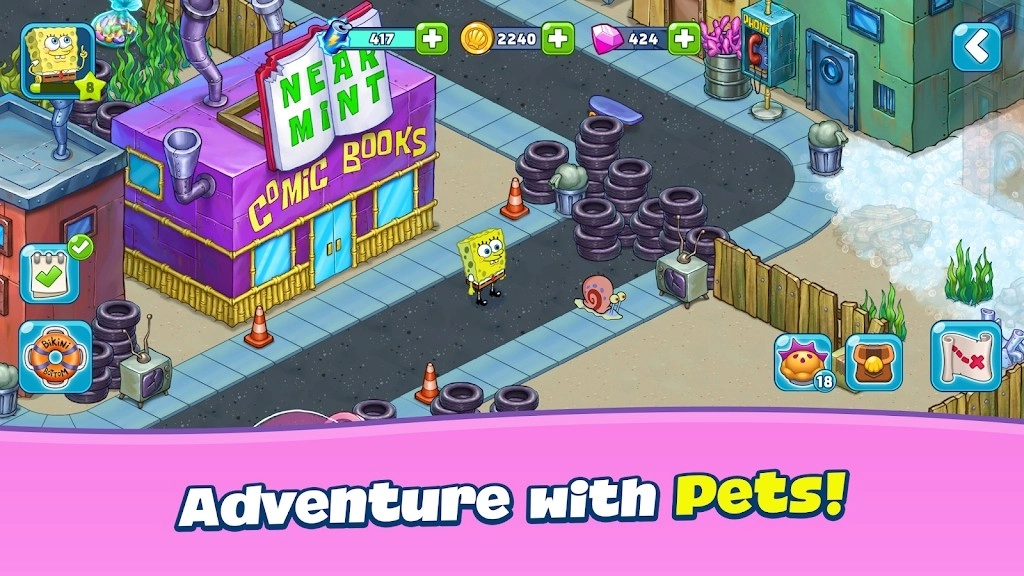 :在游戏中发掘独特的经营玩法,增加了游戏的可玩性和趣味性,自由探索海绵宝宝世界中的各种地方。不同工具