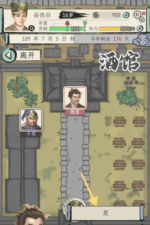 在三国人生模拟游戏,选择图中的“酒馆”建筑。