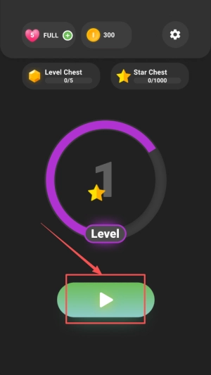 进入游戏的步骤如下:先打开游戏主界面,查看Level Chest和Star Chest的进度条,接着点击Level选项进入关卡列表。