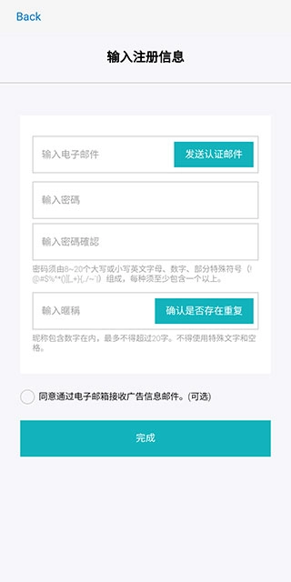 请录入各项注册所需信息,再填写邮件收到的验证码,以此完成【邮箱认证】流程。
