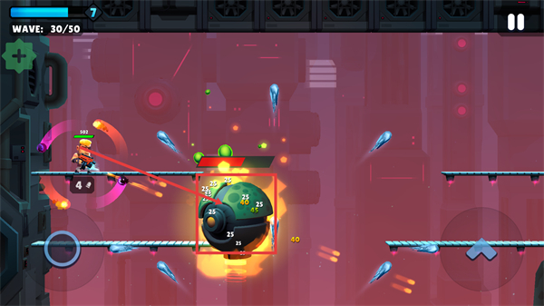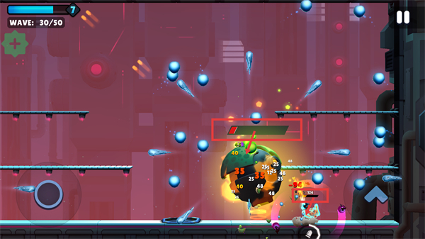 在首领战中攻击【球形首领】时,每次攻击会带来25、40之类的数值伤害,与此同时还得靠移动来躲开它的技能弹幕。