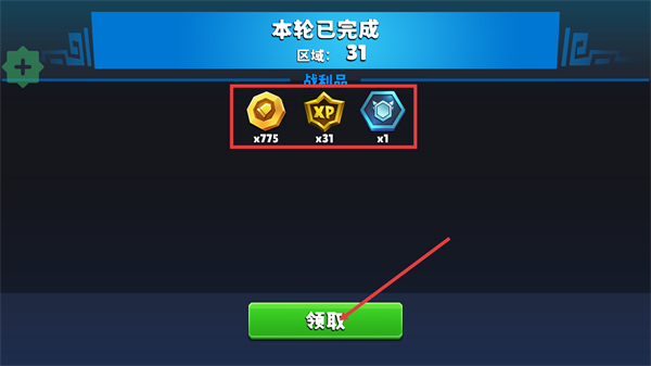 本轮结束后进入结算页面,点击【领取】按钮即可获得【金币×775】【XP×31】等奖励,这些可用于后续的养成环节。