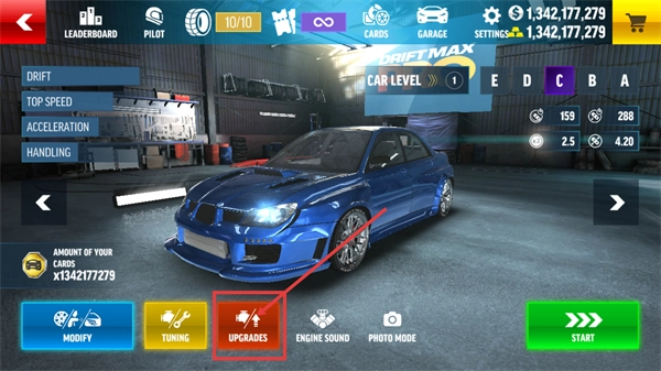 在车辆界面点击【UPGRADES】按钮,进入部件升级界面后,就能为车辆各部件的性能强化开展准备工作。