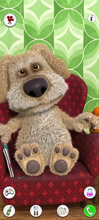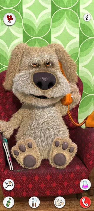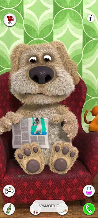 打开会说话的狗狗本应用后,用手指点一下本正在看的报纸,他就会把报纸合起来。之后你就能和本聊天了,他会重复你说的话。