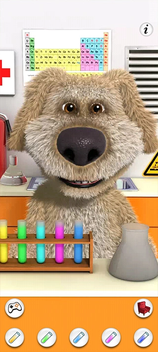:你可以带本去实验室做化学实验,通过混合不同的试管观察化学反应,您可以录制与此互动的视频。会说话的狗狗本游戏攻略