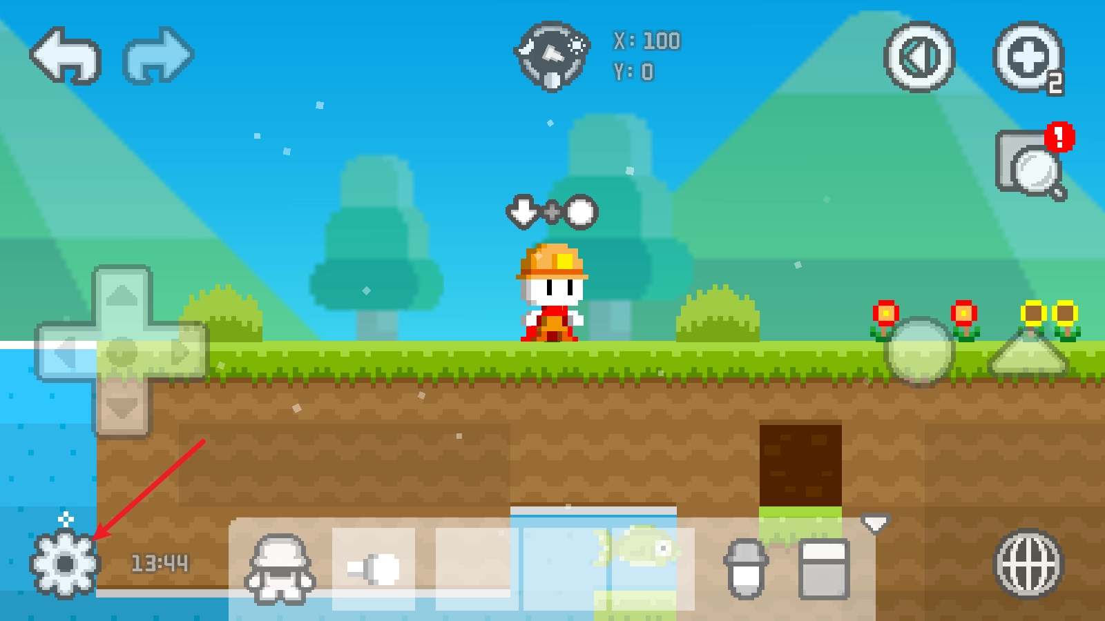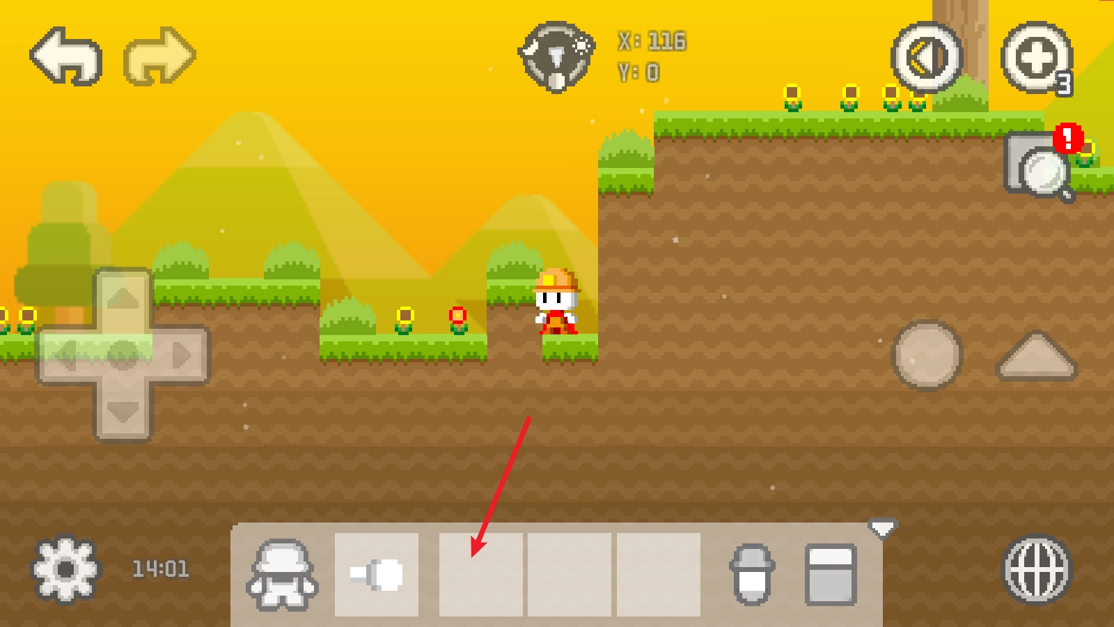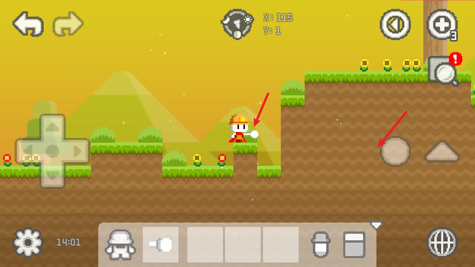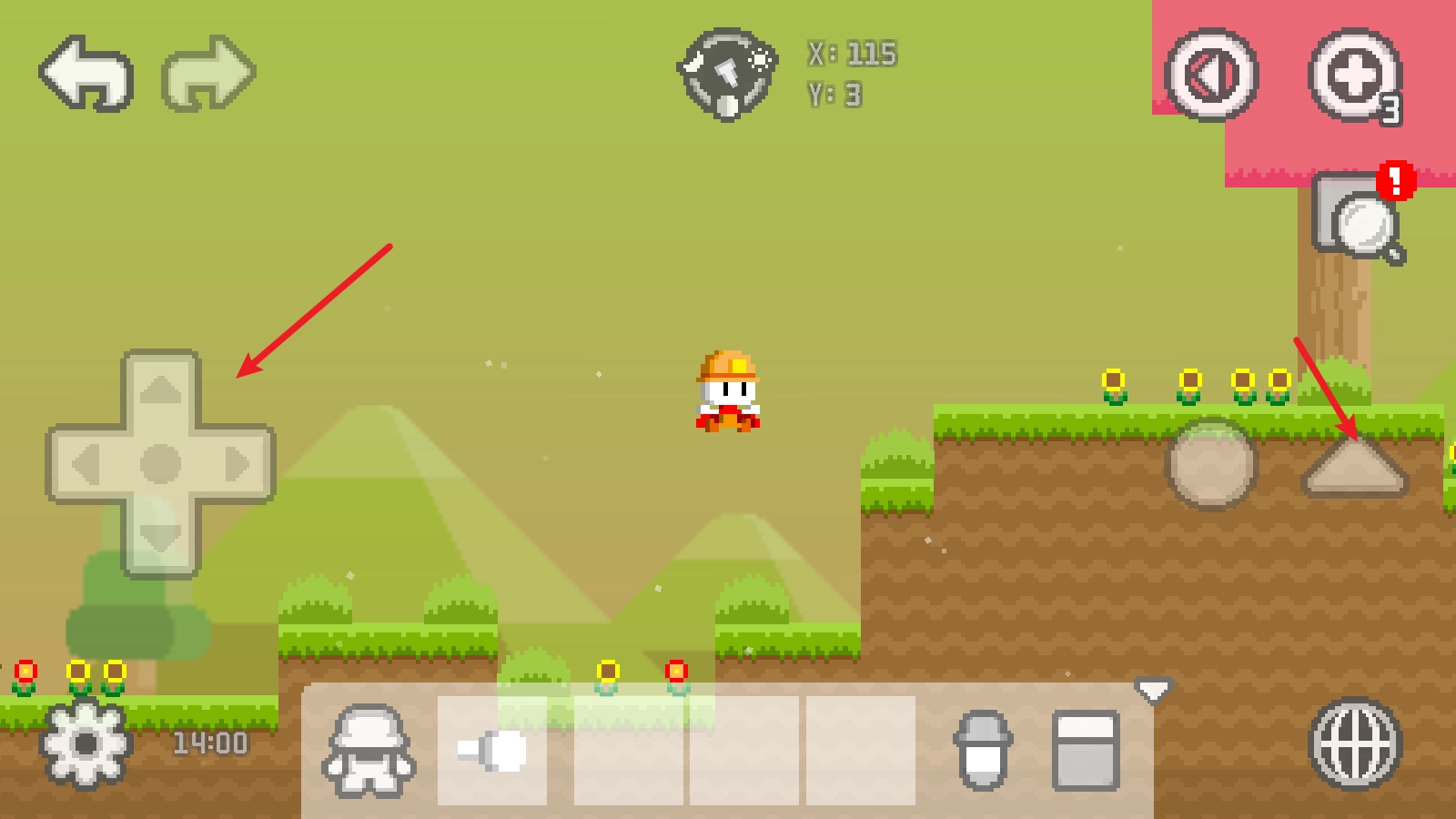 1、游戏中,我们通过左侧的摇杆就能控制人物移动,右侧的三角形可以让它跳起来。