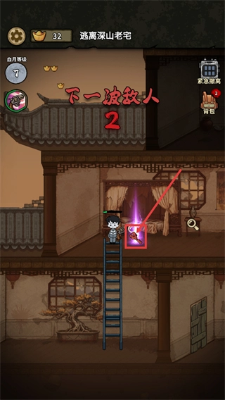 当看到【下一波敌人-2】的提示时,要优先去收集场景里的【钥匙】道具,以此增加通关需要的关键物品储备量。