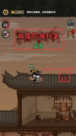 当提示显示【救援即将到来-28】时,请前往【撤离点】和幸存者会合,坚守到救援抵达即可达成关卡目标。