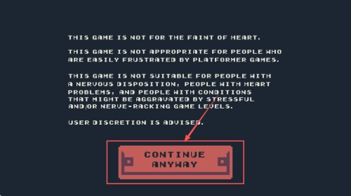 确认警告信息:在阅读完游戏的警告内容后,点击“CONTINUE ANYWAY”按钮以继续操作。