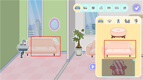 这里面给用户准备了种类繁多的家居用品,像沙发、桌子、洗手台、床、浴缸之类的,玩家能够自行挑选自己心仪的家居。