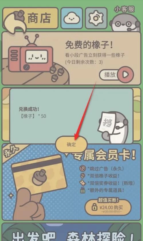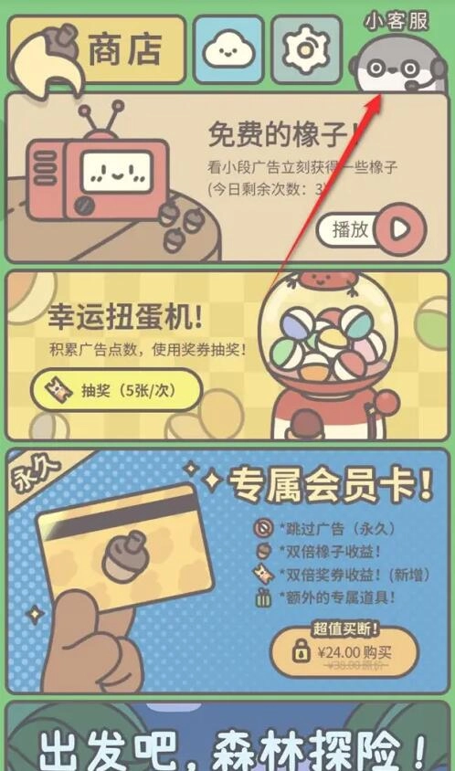 在橡子屋,点击右上角的橡子图标。