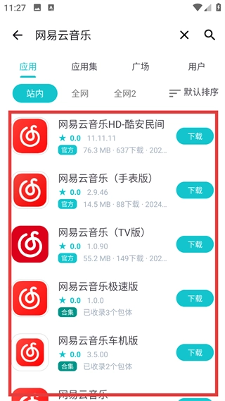 在搜索结果页面找到对应的应用条目,像【网易云音乐HD-酷安民间】这样的,点击进入就能查看详情了。