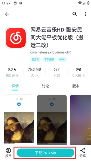 在应用详情页点击【76.3MB】按钮,即可启动该应用的安装流程,待安装完成后就能正常使用啦。