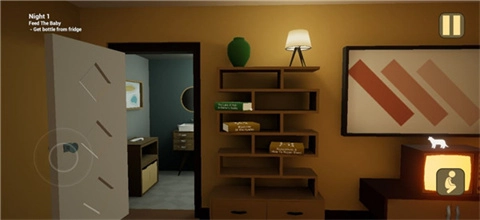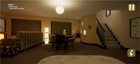 :第一人称视角打造了颇具代入感游戏体验,玩家需要尝试寻找武器与婴儿对抗,根据他的脚步声判断位置。房间探索