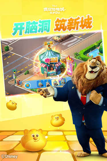 疯狂动物城是由迪士尼影业出品的3D动画电影《疯狂动物城》正版授权,融合了模拟经营与消除玩法的一款休闲游戏。