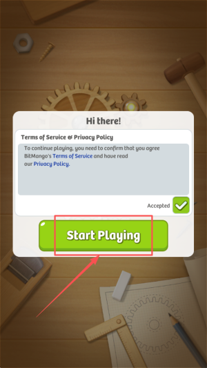 进入游戏的步骤如下:先打开游戏主界面,点击“Accepted”按钮同意相关条款,之后再点击“Start Playing”即可进入主菜单。