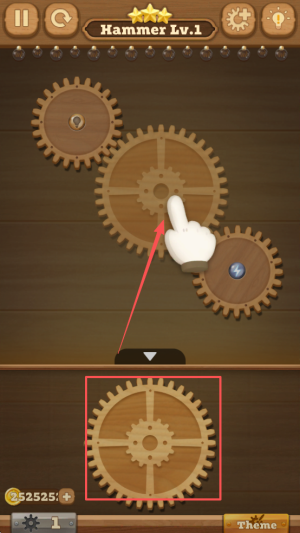 开始游戏:在关卡界面查看缺失齿轮的位置,拖动“Hammer Lv.1”工具进行拼图修复。