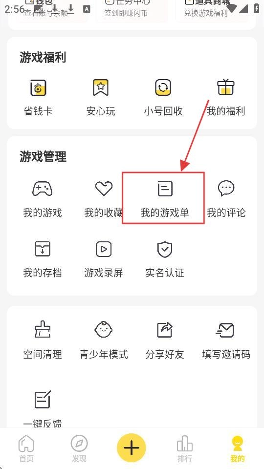 在个人中心页面,找到【我的游戏单】选项并点击,进入我的游戏单界面,就可以开始创建操作啦。