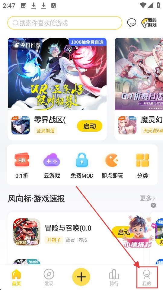 我们打开软件后,要是想开展游戏相关的操作,点击底部的【我的】按钮,就能进入个人中心页面了。