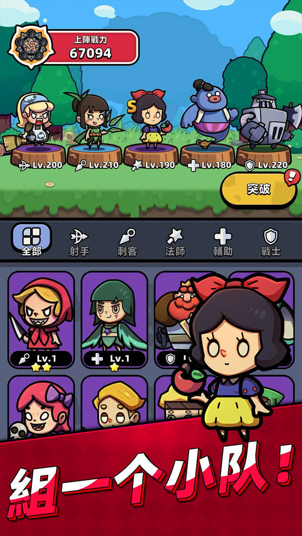 :让玩家自由挑战新任务,应对不同的敌人和挑战,游戏还提供了各种任务,丰富了游戏内容。童话冒险团英雄介绍