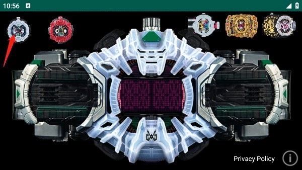 1、启动假面骑士时王变身腰带模拟器后,屏幕正中间会呈现白色的时空驱动器,驱动器上方的左右两侧排列着多款驾驭表头。由于驱动器的左右两边都能插入表头,所以第一步先点击左上方的白色Zi-O驾驭表头。