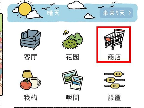 先打开萌宅物语应用,接着找到并点击“菜单”选项,之后在弹出的小窗口里点击“商铺”按钮。