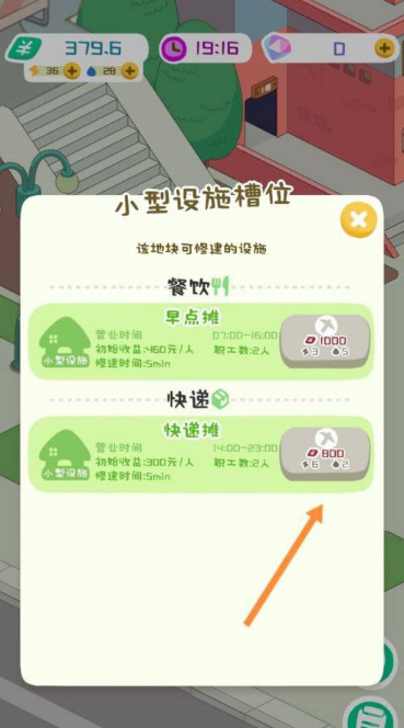 点击快递站右侧的修建,就可以把快递摊建造出来啦。