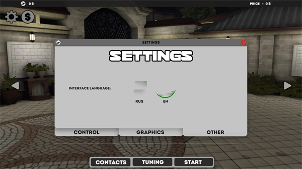 在本站下载并安装高加索停车场后,进入游戏选择语言,游戏目前提供俄语和英语两种语言选项,暂时不支持中文。