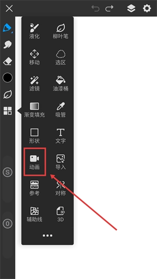 展开功能菜单后,选择【动画】选项,即可进入动画编辑相关功能页面,开启动画创作流程。