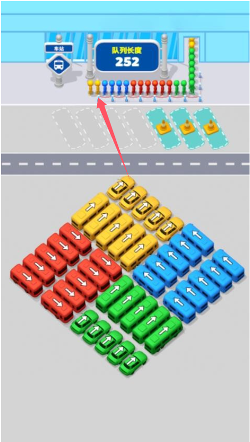 玩家需在不占用车道的前提下,把所有车辆都移动到停车格位当中,以此完成任务。