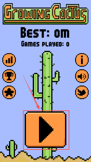 开始生长阶段:先回到主界面,接着点击“GROWING”按钮,进入沙漠关卡后,就可以操控仙人掌进行左右移动了。