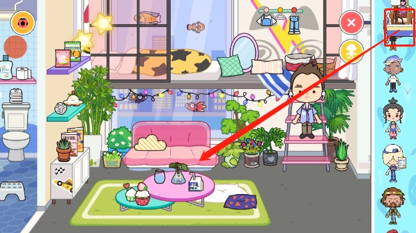 6、回到家后,再将人物拖出来就可以用家具布置家里了