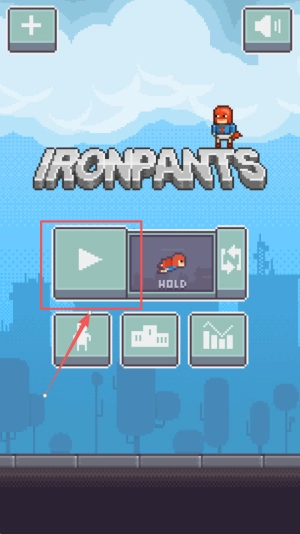 启动游戏的步骤如下:首先打开IRONPANTS的主界面,此时能看到界面上显示的“HOLD”提示,这意味着可以准备进入挑战模式了。