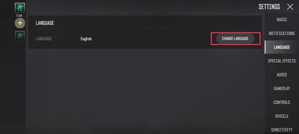 4、点击选项CHANGE LANGUAGE;