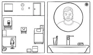 2.首先是类似教学关卡,去往1处点击后右侧点击杯子里的牙刷,然后依照提示左右拖动刷牙。之后点击水龙头,使用毛巾洁面完成。