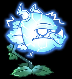 橙卡,吐出雷电球,释放电流,对前方的僵户造成范围伤害,伤害中等,范围多条道路,冷却时间短。