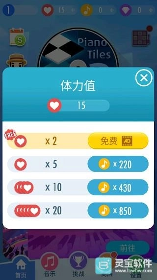 歌曲获得高分后会奖励体力:超过100分奖励2点体力,超过220分奖励5点体力,超过430分奖励10点体力,超过850分会获得20点体力。