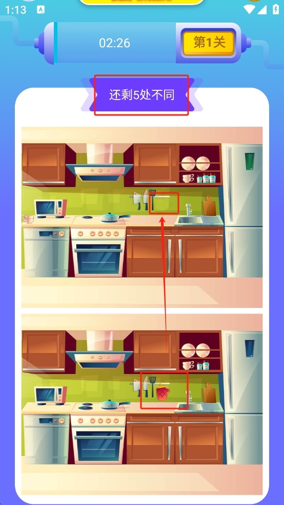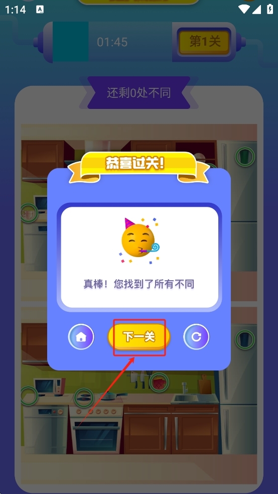智能提示功能:当玩家在关卡中遇到阻碍时,可借助放大镜获取提示,前三次使用是免费的,助力玩家找出隐藏的差异之处。